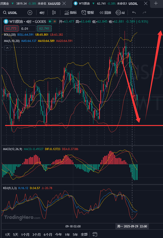 我很庆幸你能停下脚步花几分钟看我的文章,一点小建议 ,分享出来希望能帮助到各位投资者。关铭作为一位分析师做了这么多年投资,像近两天的行情,我经历过很多次了 ,你现在的心态我也能猜到八九不离十 。不要怨恨市场,也不要怪自己。做投资,都是想盈利的,也是我们投资的目的 ,我懂。但是你亏损了,原因很多,但严重的无非就那几种:不带止损 、扛单爆仓 ,主观意识太强、执行力太差、害怕怀疑心理 、否定消极心理等等,这只是总结的部分,如有上述情况或其他情况 ,可以和关铭好好聊聊,相信我一定能为你排忧解难 。一起来看看笔者对现货黄金、原油的一些见解,希望关铭对行情的预判可以给大家带来一些帮助。 ————————消息面 周二(9月30日)现货黄金在利好的基本面背景下持续刷新历史高点 ,一度达3871美元/盎司。在地缘政治紧张局势升级的背景下,美国****可能停摆的风险强化了避险黄金的需求。除此之外,市场对美联储进一步降息的预期不断增强 ,成为推动资金流向无息资产黄金的另一关键因素 。周二美国经济数据重点关注JOLTS职位空缺数据和咨商会消费者信心指数,加之FOMC重量级官员讲话,预计将在晚些时候主导美元需求,进而影响黄金走势。 原油价格延续跌势 ,目前交投于62.7美元/桶附近。市场调查显示OPEC+将在周末会议上批准11月再次增产13.7万桶/日的计划,叠加库尔德地区已恢复输油,加剧了市场对于全球供应过剩前景担忧 ,昨日国际原油价格大幅收低跌超3% 。